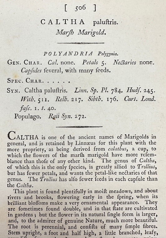 Antique Botanical Print - James Sowerby - Caltha Paluftris - Marsh Marigold - F1