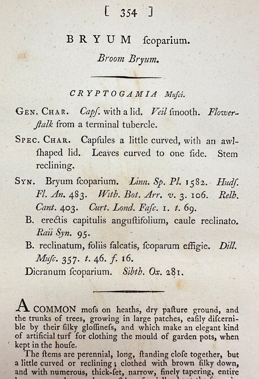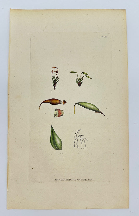 Antique Botanical Print - James Sowerby - Bryum Scoparium - Broom Bryum - F1