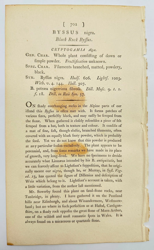 Antique Botanical Print - James Sowerby - Byssus Nigra - Black Rock Byffus - F1
