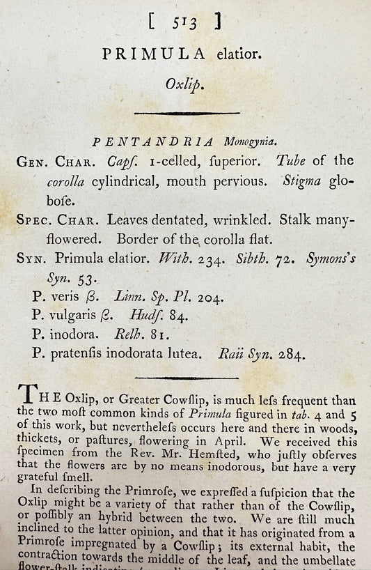 Antique Botanical Engraving - James Sowerby - Primula Elatior - Oxlip - F1