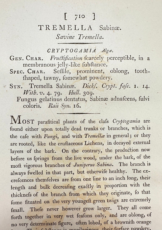Antique Botanica Print - James Sowerby - Tremella Sabinae - Savine Tremella - F1