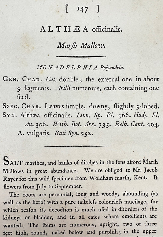 Antique Botanica Print - James Sowerby - Althaea Officinalis - Marsh Mallow - F1