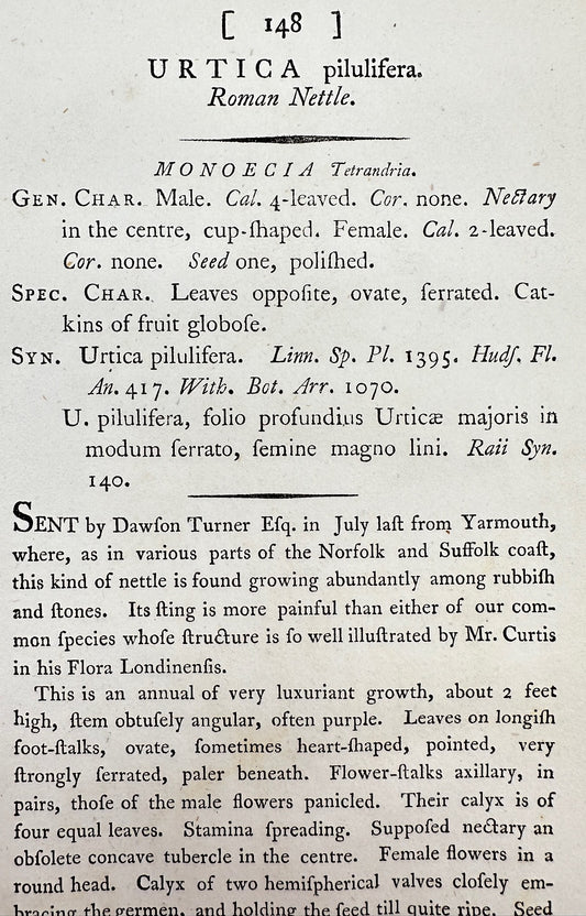 Antique Botanica Print - James Sowerby - Urtica Pilulifera - Roman Nettle - F1