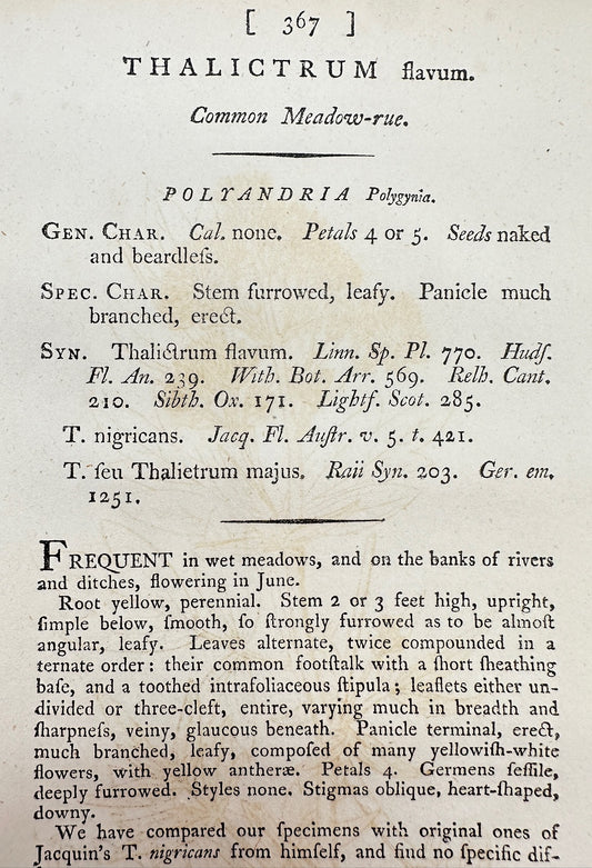 Antique Print - James Sowerby - Thalictrum Flavum - Common Meadow-rue - F1