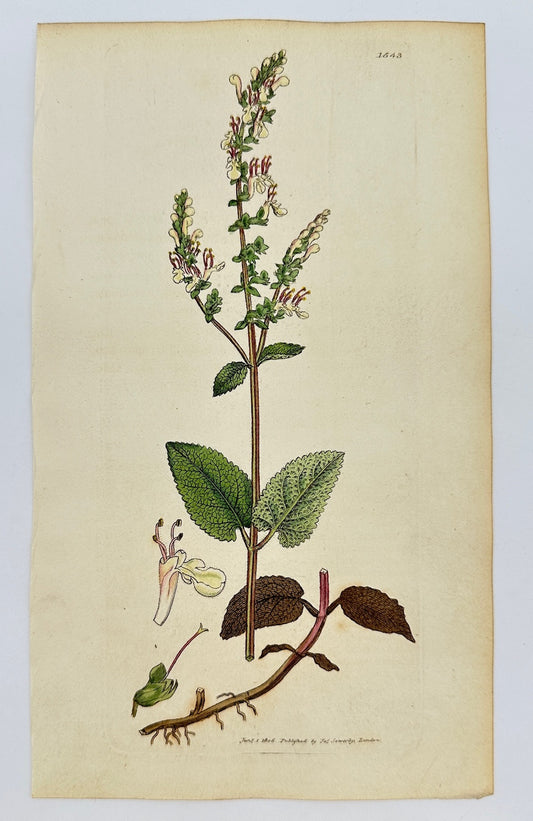 Antique Print - James Sowerby - Teucrium Scorodonia - Wood Germander - F1