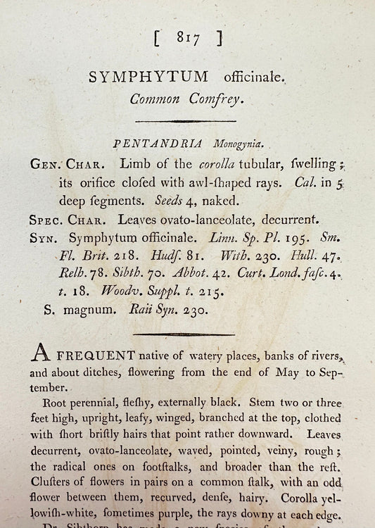 Antique Print - James Sowerby - Symphytum Officinale - Common Comfrey - F1