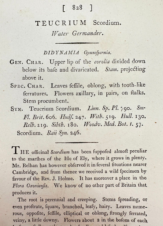 Antique Print - James Sowerby - Teucrium Scordium - Water Germander - F1