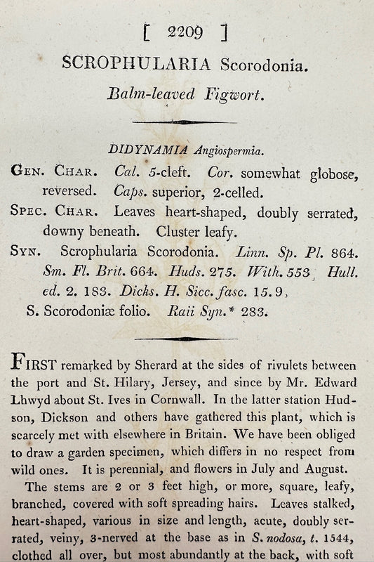 Antique Print - Sowerby - Scrophularia Scorodonia - Balm-leaved Figwort - F1