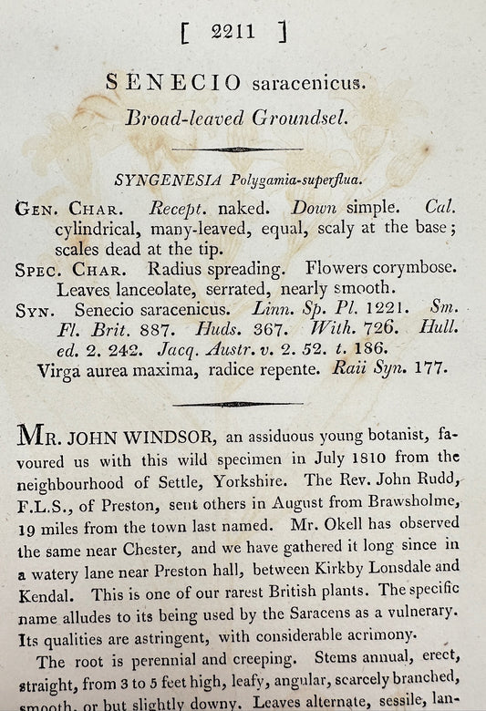 Antique Print - Sowerby - Senecio Saracenicus - Broad-leaved Groundsel - F1