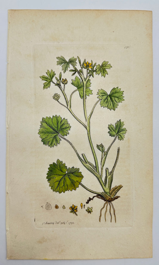Antique Print - Sowerby - Ranunculus Parviflorus - Small-flowered Buttercup - F1