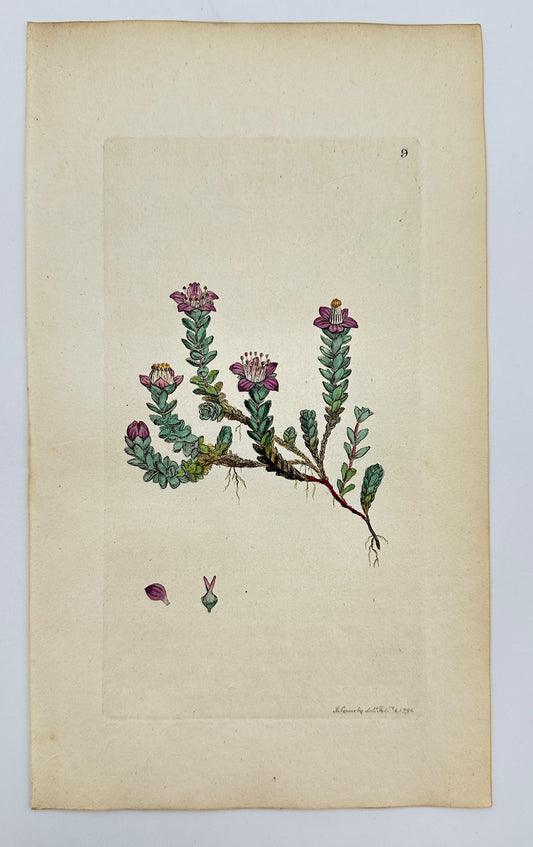 Antique Print - Sowerby - Saxifraga Oppositifolia - Purple Saxifrage - F1
