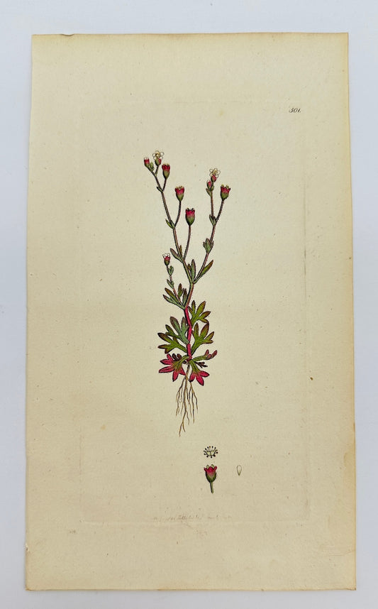 Antique Print - Sowerby - Saxifraga Tridactylites - Rue-leaved Saxifrage - F1