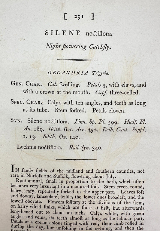 Antique Print - Sowerby - Silene Noctiflora - Night-flowering Catchfly - F1