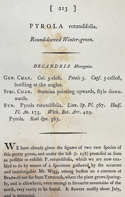 Antique Print - Sowerby - Pyrola Rotundifolia - Round-leaved Winter-green - F1
