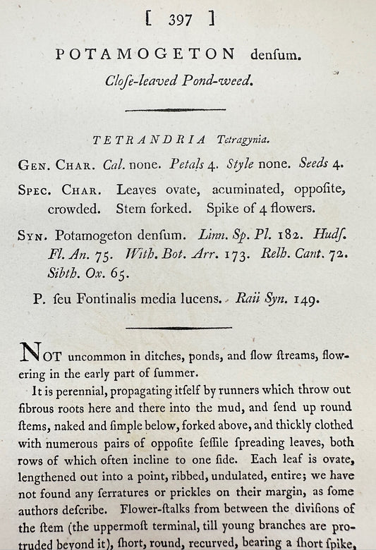 Antique Print - Sowerby - Potamogeton Denfum - Clofe-leaved Pond-weed - F1