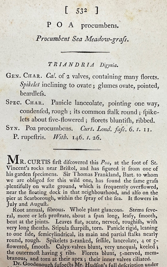 Antique Print - Sowerby - Poa Procumbens - Procumbent Sea Meadow-grafs - F1