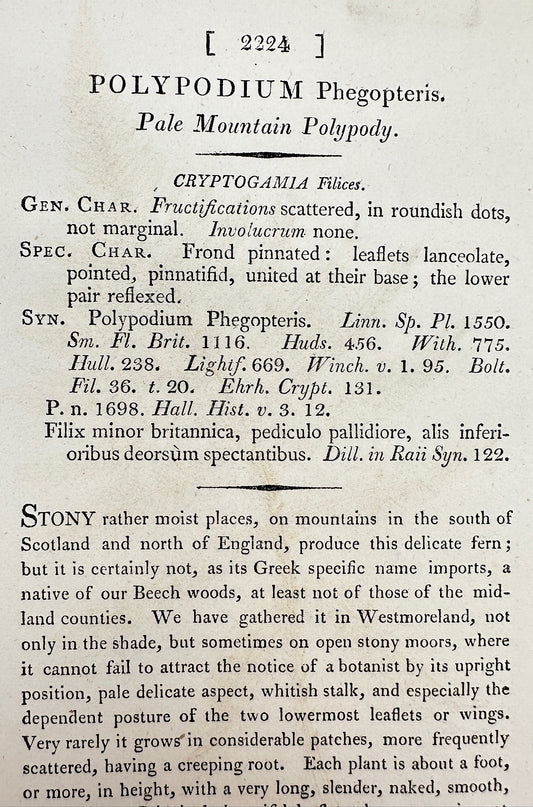 Antique Print - Sowerby - Polypodium Phegopteris - Pale Mountain Polypody - F1