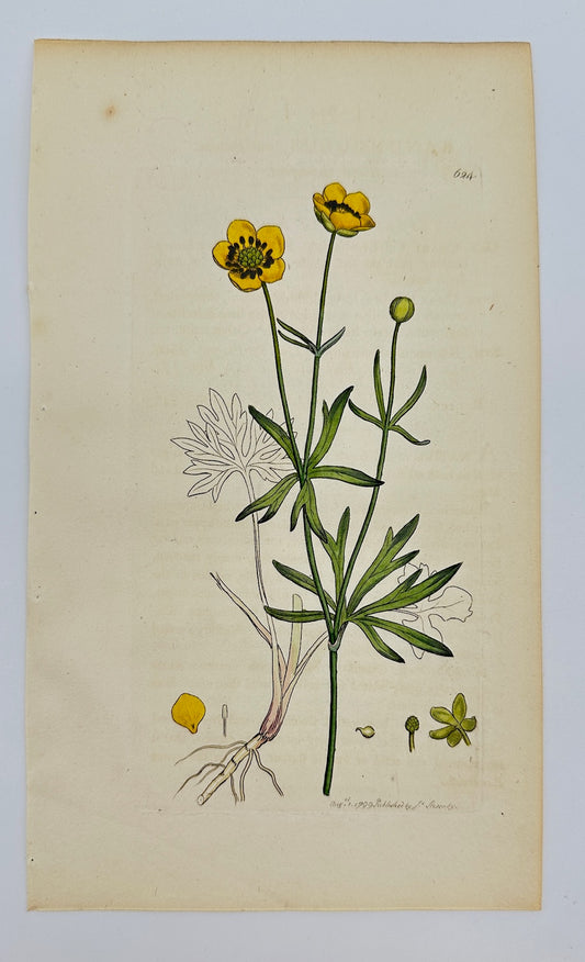 Antique Print - Sowerby - Ranunculus Auricomus - Goldilocks Buttercup - F1