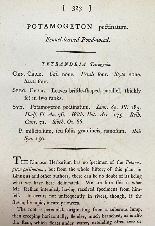 Antique Print - Sowerby - Potamogeton Pectinatum - Fennel-leaved Pond-weed - F1
