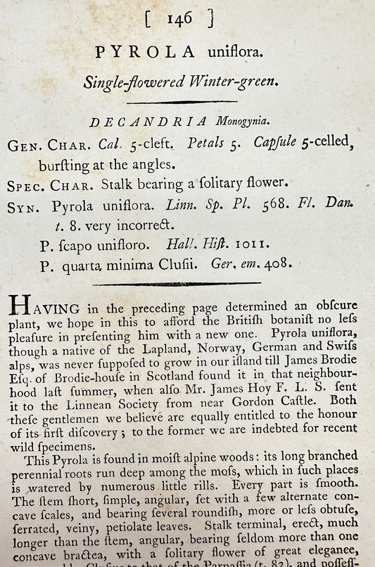 Antique Print - Sowerby - Pyrola Uniflora - Single-flowered Winter-green - F1