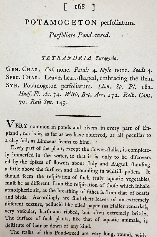 Antique Print - Sowerby - Potamogeton Perfoliatum - Perfoliate Pond-weed - F1