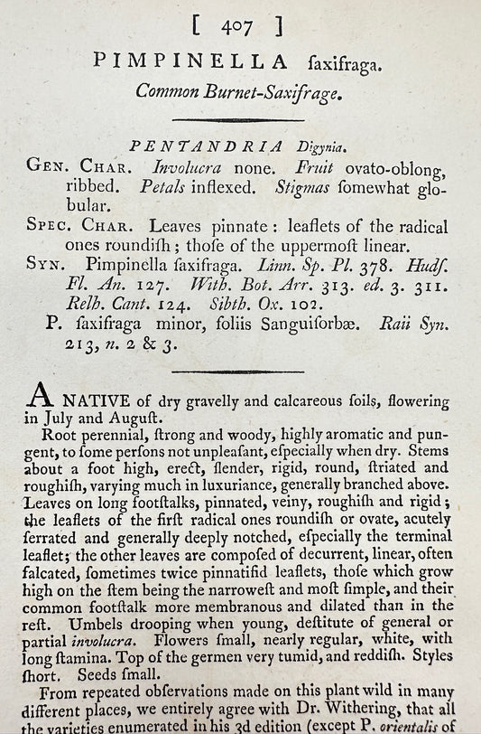 Antique Print - Sowerby - Pimpinella Faxifraga - Common Burnet-Saxifrage - F1