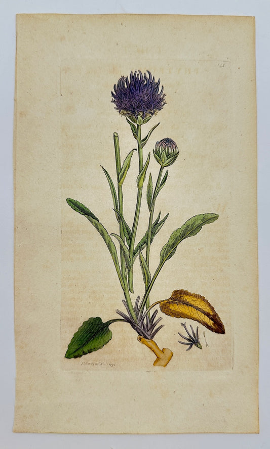 Antique Print - Sowerby - Phyteuma Orbicularis - Round-headed Rampion - F1