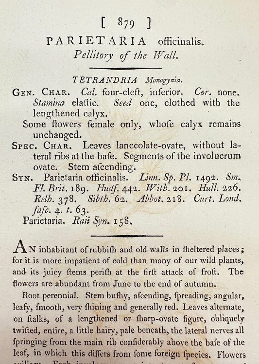 Antique Print - Sowerby - Parietaria Officinalis - Pellitory of the Wall - F1