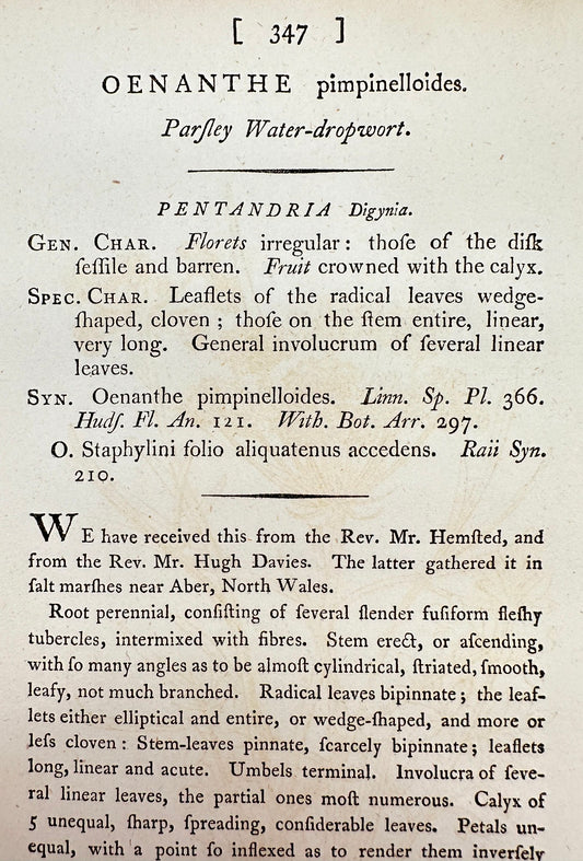 Antique Print - Sowerby - Oenanthe Pimpinelloides - Parsley Water-dropwort - F1