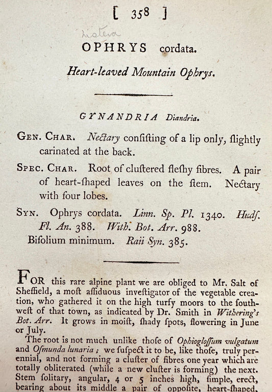 Antique Print - Sowerby - Ophrys Cordata - Heart-leaved Mountain Ophrys - F1
