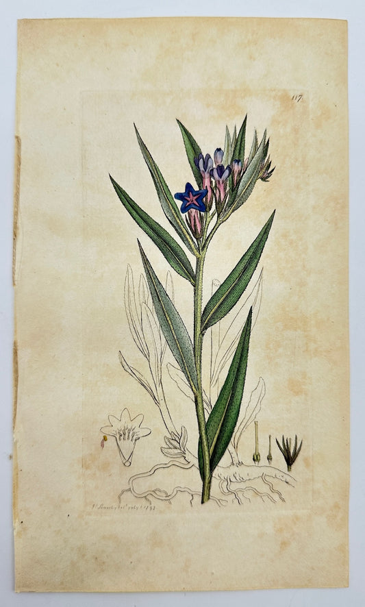 Antique Print - Sowerby - Lithospermum Purpuro-caeruleum - Purple Gromwell - F1