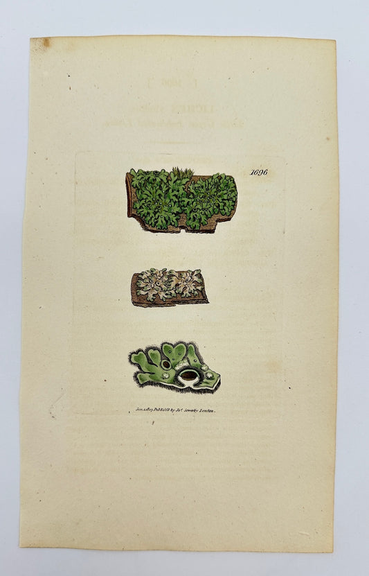 Antique Print - Sowerby - Lichen Virellus - Little Green Imbricated Lichen - F1