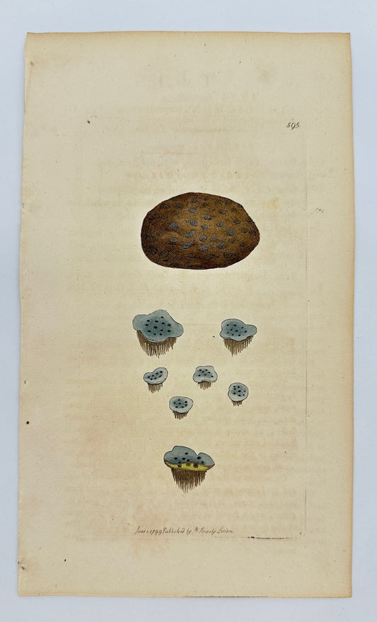 Antique Print - Sowerby - Lichen Trapeziformis - Trapezoidal Lichen - F1