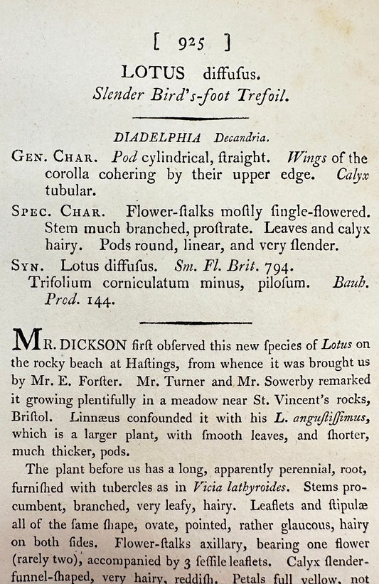 Antique Print - Sowerby - Lotus Diffusus - Slender Bird's-foot Trefoil - F1