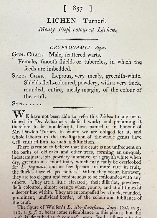 Antique Print - Sowerby - Lichen Turneri - Mealy Flesh-coloured Lichen - F1