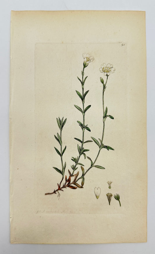 Antique Print - James Sowerby - Cerastium Arvense - Field Chickweed - F1