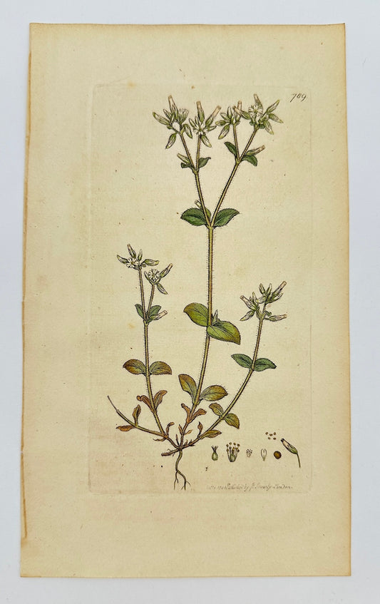 Antique Print - James Sowerby - Cerastium Vulgatum - Common Chickweed - F1