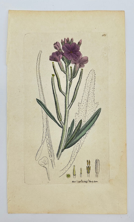 Antique Print - James Sowerby - Cheiranthus Sinuatus - Sinuate Wallflower - F1