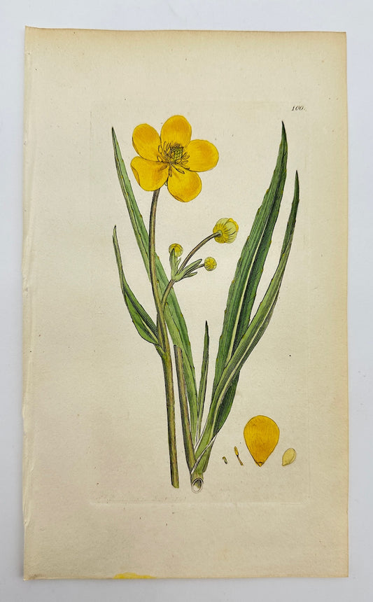 Antique Botanical Print - Sowerby - Ranunculus Lingua - Greater Spearwort - F1