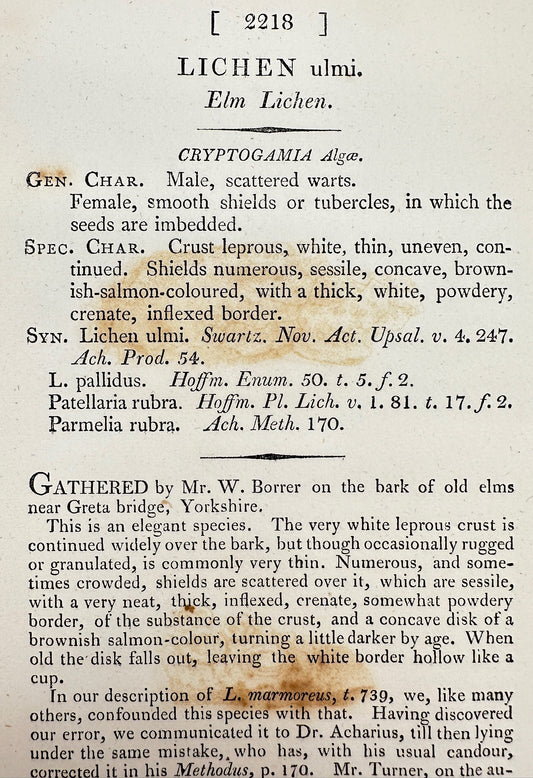Antique Botanical Print - James Sowerby - Lichen Ulmi - Elm Lichen - F1