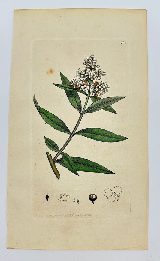 Antique Botanical Print - James Sowerby - Ligustrum Vulgare - Common Privet - F1