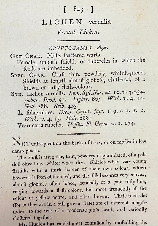 Antique Botanical Print - James Sowerby - Lichen Vernalis - Vernal Lichen - F1