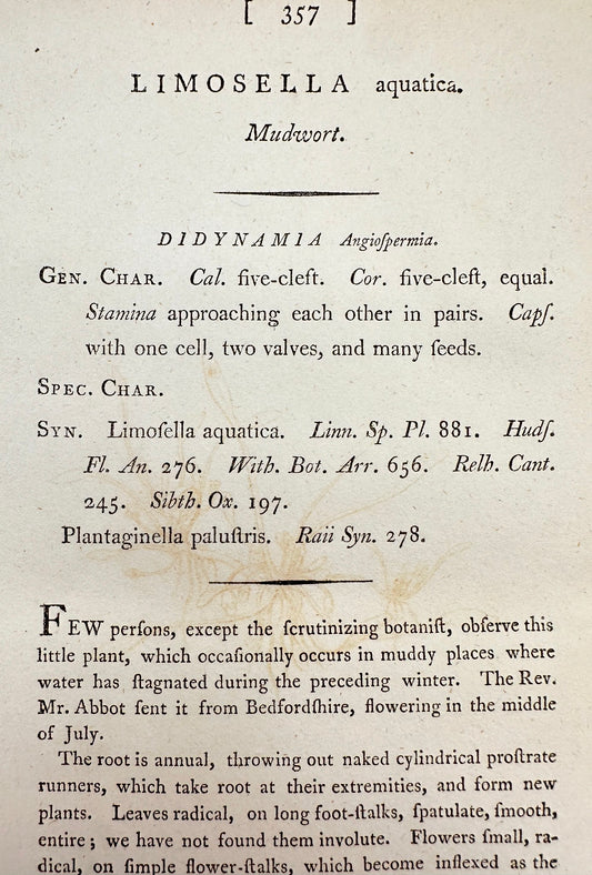 Antique Botanical Print - James Sowerby - Limosella Aquatica - Mudwort - F1