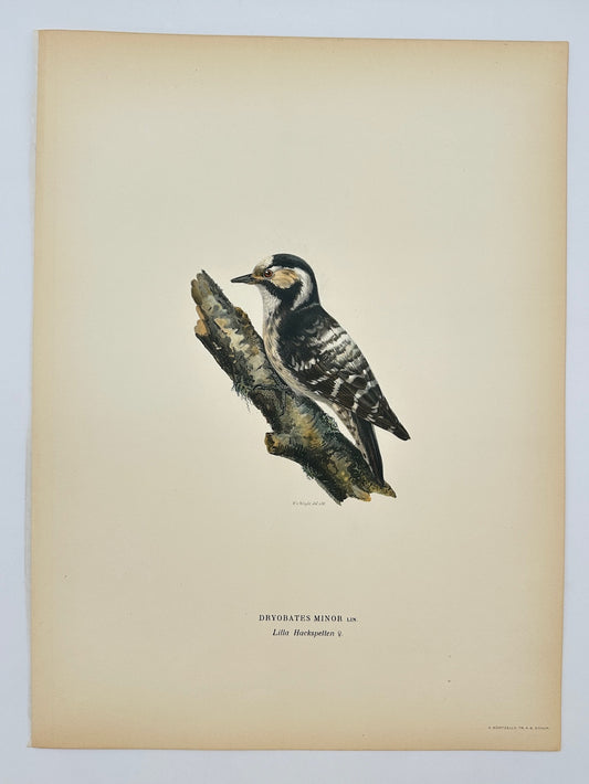 Original Antique Bird Print - Dryobates Minor - Lesser Spotted Woodpecker - F5
