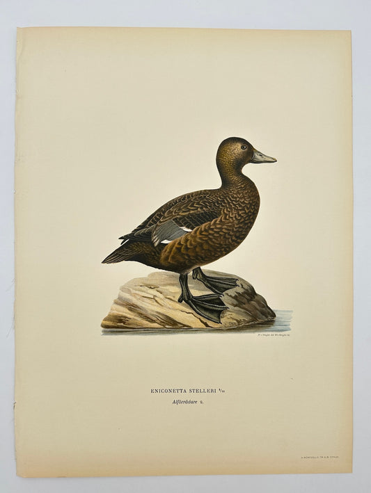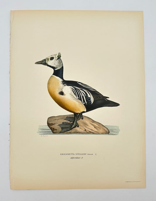 Antique Print - Magnus von Wright - Eniconetta Stelleri - Steller's Eider - F5
