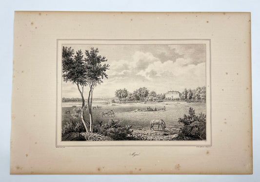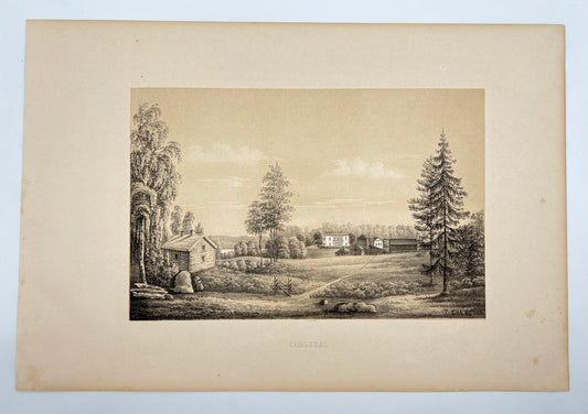 Antique Engraving - Ulrik Thersner - View of Karlsdal Farm in Sweden - E3