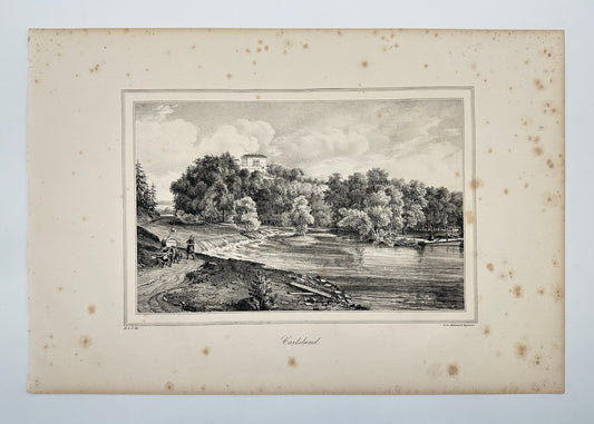 Antique Engraving - Ulrik Thersner - View of Karlslund's Mansion in Sweden - E3