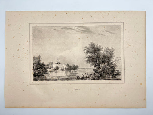 Antique Engraving - Ulrik Thersner - View of Vibyholm Castle in Sweden - E3