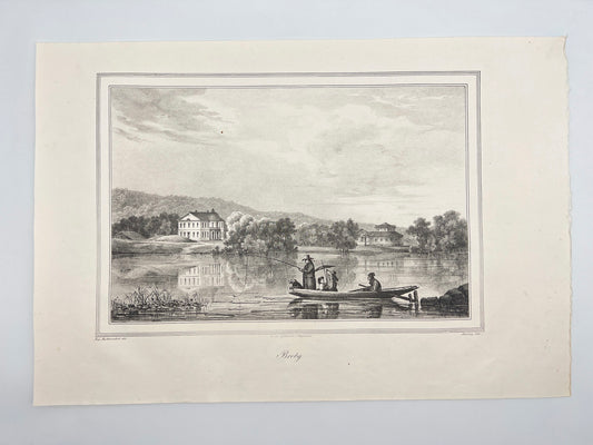 Antique Engraving - Ulrik Thersner - View with Broby Farm in Sweden - E3