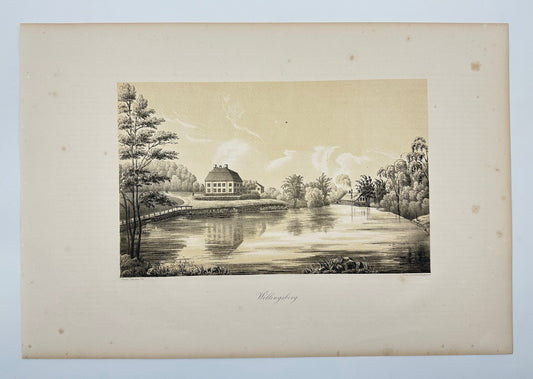 Antique Engraving - Ulrik Thersner - View of Villingsberg Manor in Sweden - E3